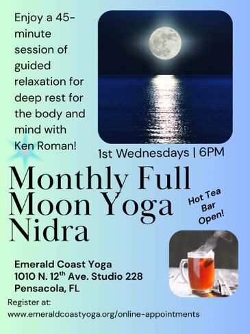 Join Ken Roman for a monthly full moon yoga nidra session for deep rest and regulation for the nervous system, promoting healing and reducing stress.