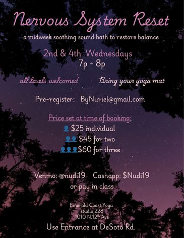 Join Nuriel on the 2nd and 4th Wednesday evening of each month for a midweek soothing sound bath.